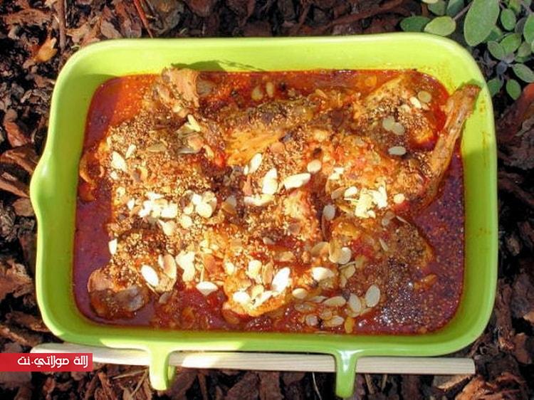 1 في وعاء، ويقلى في زيت الزيتون الساخن البصل و فصوص الثوم. و 1 قرصة فلفل، و ملعقة صغيرة من الفلفل الحلو و الزعفران. ثم تضاف قطع الأرانب.