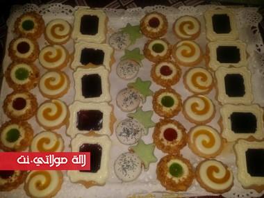 كنخلط جميع العناصر مع بعضها ومكندلكش العجين غير كنجمعها و نقسم العجين على 2 واحد نخلط معاه الشكلاط فيرميسيل ولاغير نخليه عادي هادشي اختياري غير من باب التغيير كنطلقو العجين بالمدلك ونرشمو بالطابع لي بغينا بالنسبو للتزيين كيبقا اختياري شديت الصابلي و دهنتو بناباج و رشيت عليه البافو انا المرايا و شكل الحلزوني و خاتم سليمان عمرتهم بشويت من ناباج و 2 معالق من كليكوز و شوية اللون لي حبينا وعمرت بالشوكة كيفما و ريتكم قبل .