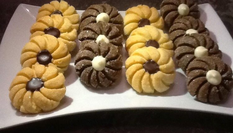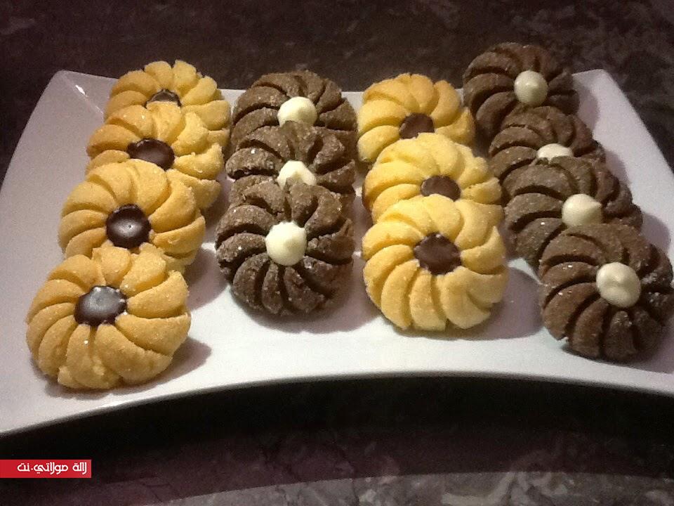 تنخلطوالعجين عادي تم تنكورو كويرات ونفنذوهم في سنيدة مخلطة مع فاني تم تنطبعوهم بالمرشم الى فرن نقسمو العجين على جوج ابيض واسود القسم الاول مافيهش كاكاو