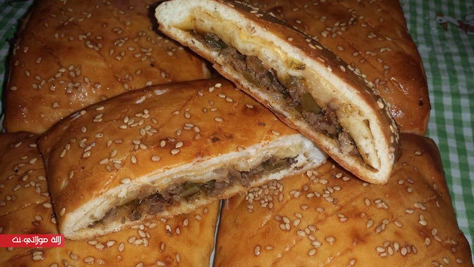 ندلك العجينة 1سم و نوضع الحشوة الوسط و نطويو و نستف فرماج سندويش و نطويو لعجين و نقطعوهم