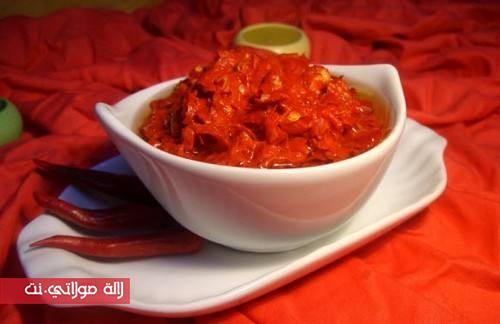 1 كغ فلفل أحمر حار من الاحسن و الأفضل الفلفل الصغير 1 رأس ثوم كامل 2/1 ملعقة صغيرة ملح زيت زيتون