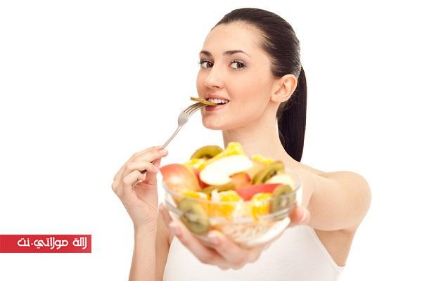 - ابدئي بتناول المأكولات الصحية المفيدة التي تحتوي على العناصر الغذائية الأساسية للجسم كالبروتينات والفيتامينات والأملاح والمعادن والألياف، وبالمقابل، تجنبي الأطعمة المقلية وتلك التي تحتوي على نسبة عالية من الدهون والسكريات الغنية بالسعرات الحرارية، فهي المسؤولة عن اكتساب الوزن وتراكم الدهون في الجسم.