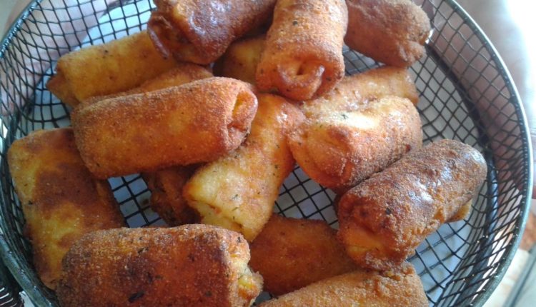 و أخيرا نحشو الكريب بالخليط الذي تم تحضيره و نلف على شكل سيجار و نمرر في البيض و من تم في الشبلور و تقلى في الزيت.