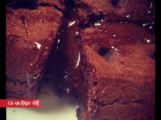 صب خليط الشوكولاتة في 6 قوالب أو قالب كبير. توضع في فرن ساخن 200 درجة مئوية لمدة 10 دقائق بالنسبة للقالب الصغير و 15 دقيقة يالنسبة للقالب الكبير.