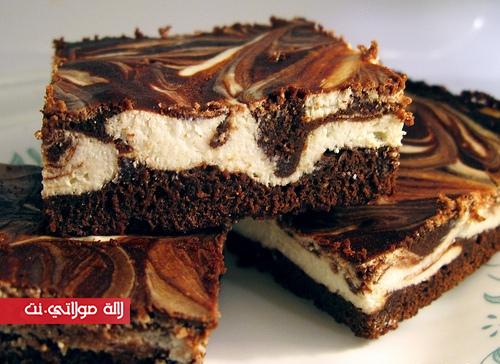 ندهن قالب الكيك بالزبدة و الدقيق، نفرغ 4/3 من خليط الكعكة ثم نفرغ الجبن و ننشره على كل الجوانب بعد ذلك نفرغ باقي خليط الكعكة.