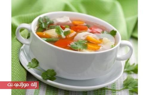 – نضيف خليط الخضار على المرقة ونتركها لمدة 5 دقائق إلى أن يحدث الغليان ثم نضيف لها الشوربة.