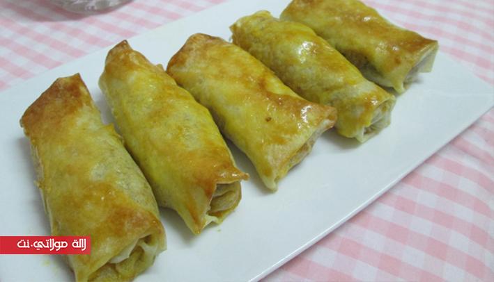 نقسمو ورقة البسطيلة الى 4 مثلتات و نوضعو في اسفل كل مثلث 2 معالق من الحشوة اللي حضرنا و نلفو من التحت لقمة المثلث بشكل نحصلو بيه على نيم.