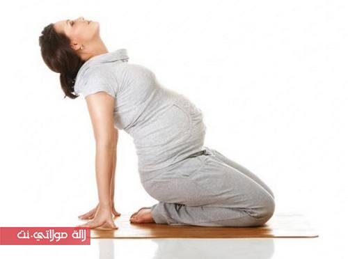 -التمرين الثاني: إركعي على يديك وركبتيك، شدي ذراعيك وإجعليهما مستقيمتين أمامك على الأرض، قومي بشد عضلات بطنك، وأثنى ردفيك نحو الأسفل وحول ظهرك، ثم خذي شهيق. بعدها أرخي ظهرك للوضع العادي، ثم خذي زفير. أعيدي هذا التمرين حسب قدرتك، فهو يقوي عضلات المعدة ويريح آلام الظهر أثناء الحمل والمخاض.