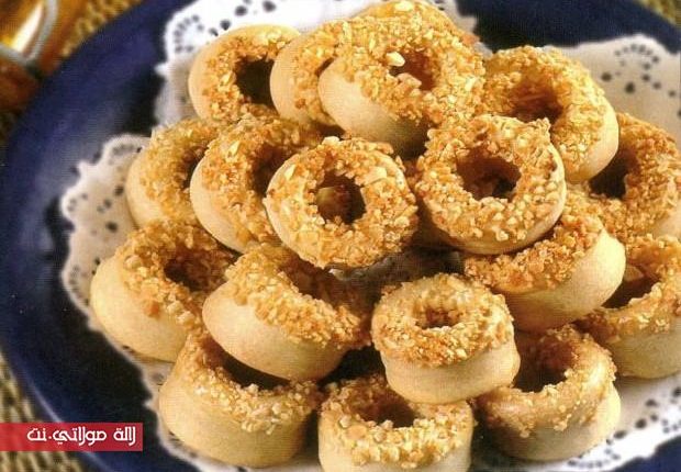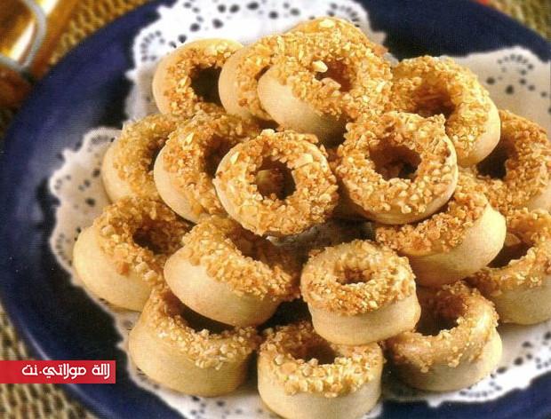أغلقيها جيدا من الجانبين ثم لفيها لتشكلي الدائرة، ومرريها في بياض البيض ثم في اللوز المهرمش