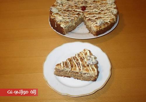 تانخلطو جميع المقادير و مباشرة ملي تاطيب الكيكة تانديروه فوقها و نرجعو الكيك للفرن حتى تتحمر, العافية تكون مشعولة من الفوق
