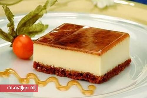 المقاديرربع كيلو لبنه 4 حبات بيض 1 م-ص فانيلا 1 كوب سكر 1 علبه قشطه 200 غرام جبن كريمي بسكويت مطحون 100 غرام زبد ذائبة. الطريقةيتم خلط البسكويت المطحون مع الزبد المذابة و يوضع في قالب عميق مجهز للفرن و من ثم يتم خلط المكونات المتبقية سويا في الخلاط الكهربائي و من ثم يضاف الخليط فوق البسكويت المطحون و يدخل قالب الي فرن متوسط الحرارة لمده نصف ساعة ثم تترك حتى تبرد و من ثم توضع في الثلاجة لمده 2 ساعة