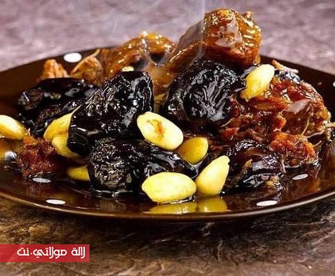 ونقدمالمروزية المغربية في صحن التقديم ونوزع عليها الزبيب والمرق واللوز مقلي .