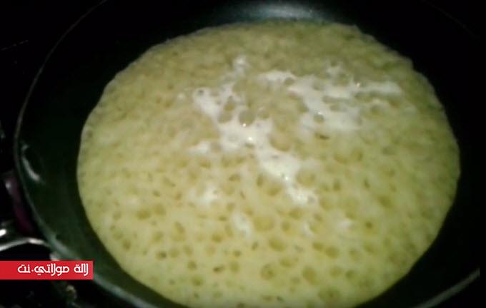 تنسخن المقلاة وتنهزها عندي وتنكب فيها مغرفة ديال الخليط وتنطيبها على عافية تقريبا قوية شوية