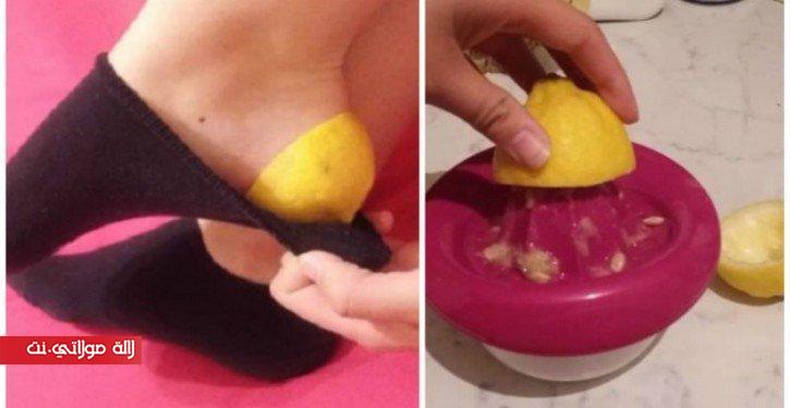 قومي بعصر الليمون الحامض، ثم ضعي قطع الليمون الحامض المتبقية على قدميك وارتدي الجوارب.