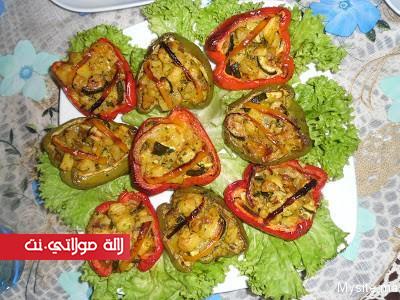 الفلفلة معمرة بالدجاج والفطر في الفرن روعة