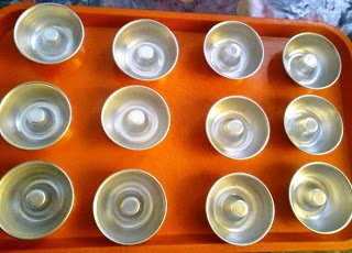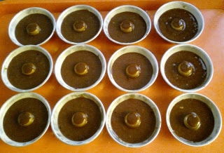 إذهني المولات الصغيرة بالزبدة و رشيهم بالدقيق .إملئيهم حتى الثلثين بالخليط و وطهيهم في فرن معتدل الحرارة ( 180 °) وتركيهم جانبا