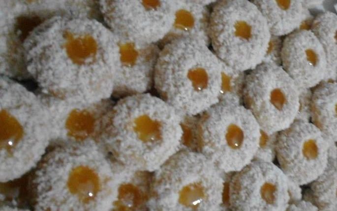 نخلط مقادير العجينة ثم نشكل منها كويرات تصفف في صفيحة فرن بواسطة اصبع نعمل حفرة صغيرة في الوسط وندخلها الفرن سخون على نار متوسطة ..