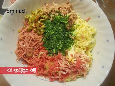 تحضير سلطة المعكرونة بالبطاطس والكاشير والطون والفرماج بالصور