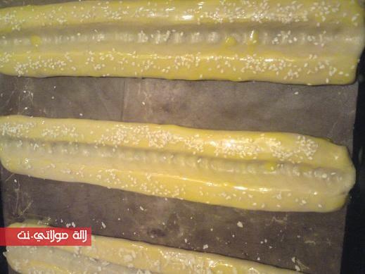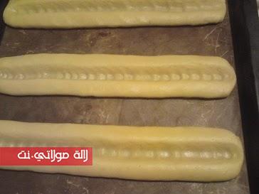أنا قسمت العجينة إلى 3 و إذا حبيتو أكبر أقسموها على زوج و عملو حرابل و بكف يدكم تهبطو الحرابل كما في الصورة