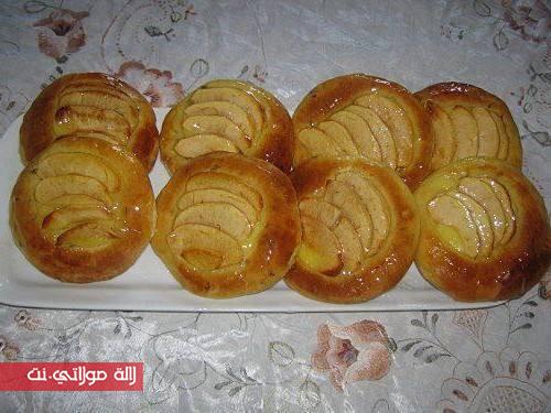 من بعد نستف شرائح التفاح فوق لكريم باتسييروندردر فوقه شوية سنيدة