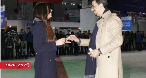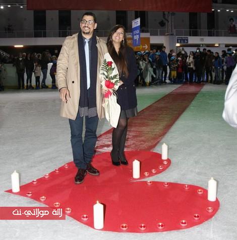 بالصورة …..قمة الرومانسية مغربي يعرض الزواج على جزائرية بصالة التزلج بإسبانيا