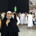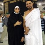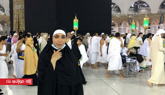 ظهرت نجمة برنامج “أراب أيدول” بملابس الإحرام، بالعباءة السوداء مع حجاب على رأسها، وكان معها زوجها وابنته النجمة الشابة حلا.
