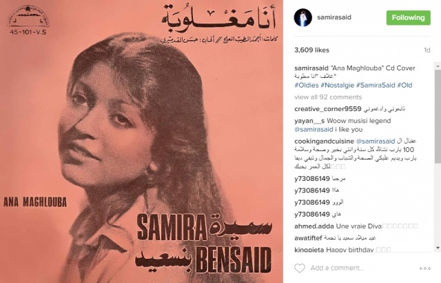 نشرت الفنّانة المغربية سميرة سعيد، عبر حسابها الرسمي على تطبيق “انستغرام” صورة لغلاف ألبوها القديم “أنا مغلوبة”، الذي أطلقته وهي في سنّ الـ18 عاماً.