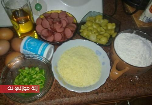 الطريقة فحال اي كيكة اللبن والبيض والدقيق والزيت والبيكينج بودر ورشة الفلفل الاسود وبعدين بتقلبي عليهم الصوصيص والجبنة والزيتون والفلفل الاخضر وتكونى دهنة الصينية ,الكيكة العادية وتحطيها في الفرن 40 دقيقة فحال الكيكة بالضبط .