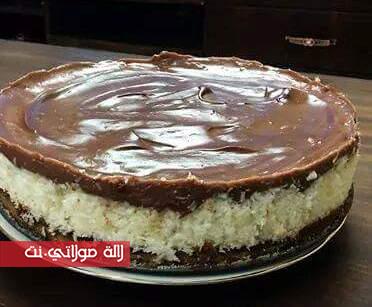 _ نضع قالب كيكة الباونتي في الثلاجة لمدة ساعتين على الاقل ونقدمها .