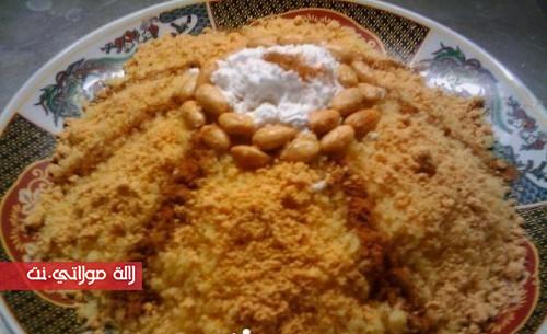 ندهنو الكسكس بالزيت ونزيدو ليه شوية الملح ونديروه إفور من بعد مايفور نحلوه بالحليب مزيان ونرجعوه إفور للمرة 2 مني إفور نكرو ليه نفس العملية ونرجعوه إفور للمرة 3 مني إفور ندهنوه بالزبدة ونزيدو سكر كلاصي حسب الذوق ونزينوها باللوز والقرفة