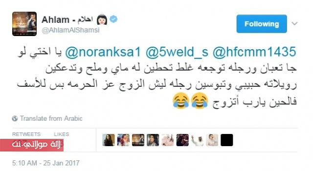 تصدرت النجمة الخليجية أحلام قائمة الوسوم الأكثر تداولاً على موقع “تويتر”، عبر “هاشتاغ”: “#احلام_تبوس_رجل_زوجها”.