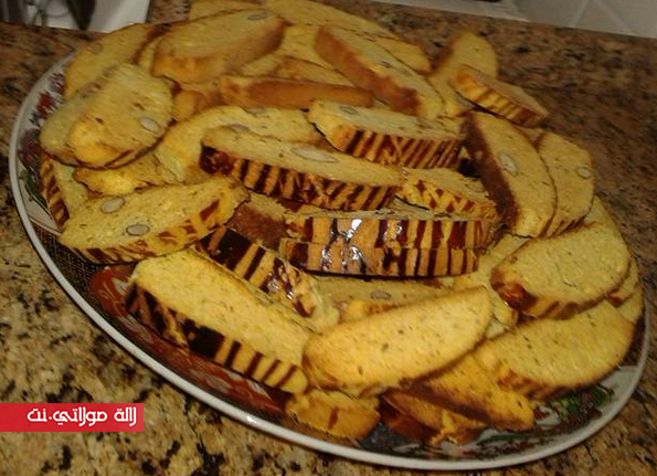 خلطي كلشي و بقاي تزيدي في الدقيق حتى تجمع العجينة و نديرو حرابل في لاطة مدهونة بالزيت و نخلطو اصفر بيضة مع شوية كاوبيل و ندهنوا الحرابل و نشرطو بالفرشيطة و ندخلو الفران و هو بارد هذا سر من اسرار النجاح ديالو و منين يطيب نص طيبة نخرجوه و نغطيه بطرف الثوب و نخليه نص نهار مغطي هذا هو سر النجاح الثاني ديالو و نقطعو و نرجعو يتحمر شوية و بالصحة و الراحة.