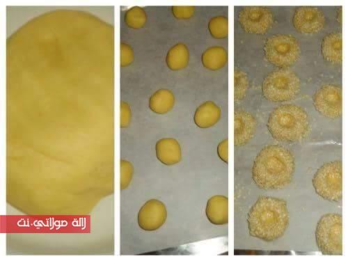 نشكل كورات ونغمسها في بياض البيض ونلفها في الجنجلان