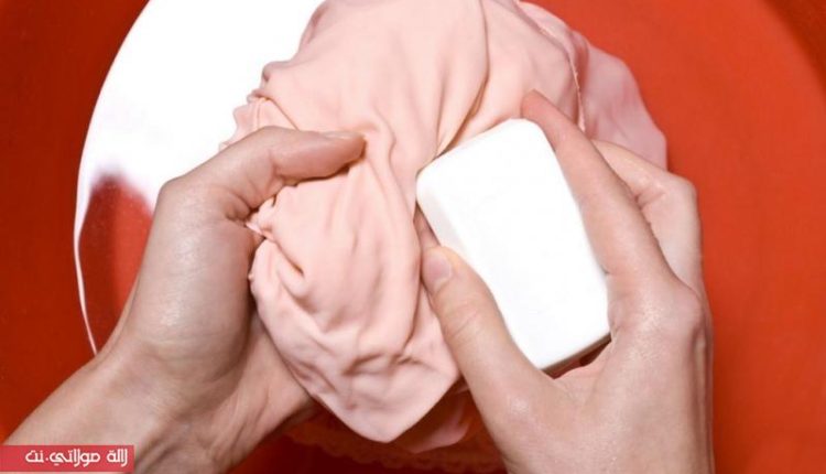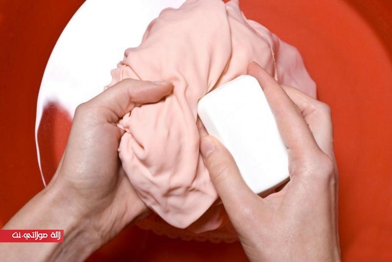 2- اغسلي القطعة بالماء لإزالة آثار الصابون عنها.