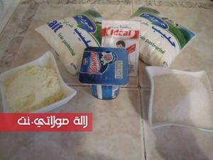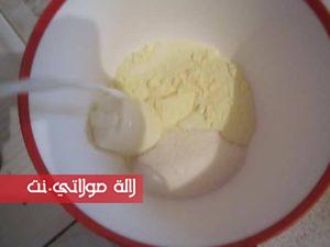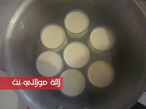 تنديرو نصف لتر من الحليب باش يغلى وتانخدو النصف لتر الاخر تنخلطوه مع جميع المقادير الاخرى تنخلطوهم بجوج وتنكبهوم في كيسان التقديم