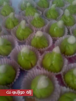 العجينة.250فورص اصفر بيضة نصف كاس زبدة بصة ملح ملون اخضرتجمع بماء الزهر