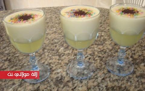 نصب العصير في كؤوس التقديم و نتركها ساعة تقريبا بحيث نحصل على خليط في الاعلى مثل الياغورت