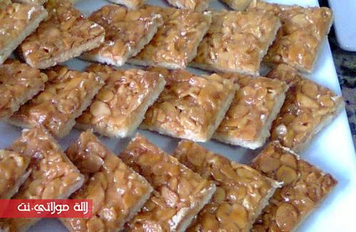 كنديرو كليكوز فوق نار مع زبدة تم نضيف سنيدةو في لاخير كنديفو قشدة طرية وحنا كنحركو وفي لاخير لوز إفيلي ونسب لخليط فوق العجين بسرعة ونطلقوه بشي سباتيل علا موس نسرحوه مزيان ونرجعهى للفرن تكمل طياب وتحمر مالي نخرجها نقطعها مربعات وبصحة وراحة