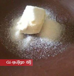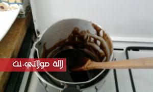شكلاط مذوب أو كوفتير مخلط مع ملعقة سكر ونديروه فوق بوطة يدفى ونعمرو به لحليوة ديالنا