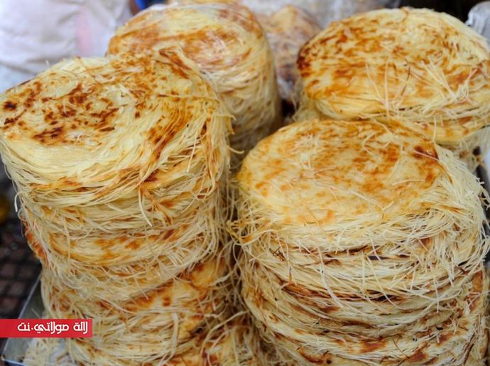تشكل كويرات و تترك لترتاح قليلا ثم تبسط رقيييييييقة جدا و تقطع على شكل خيوط رقيقة