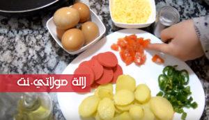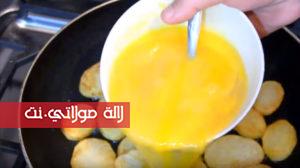 بعد أن تتحمر البطاطس نضيف إليها البيض مخفوق مع القليل من الملح.
