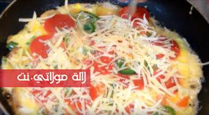 نقوم بتغطية المقلاة حتى ينضج البيض و يذوب الجبن و نقدمه على الشكل التالي:
