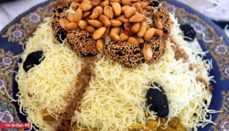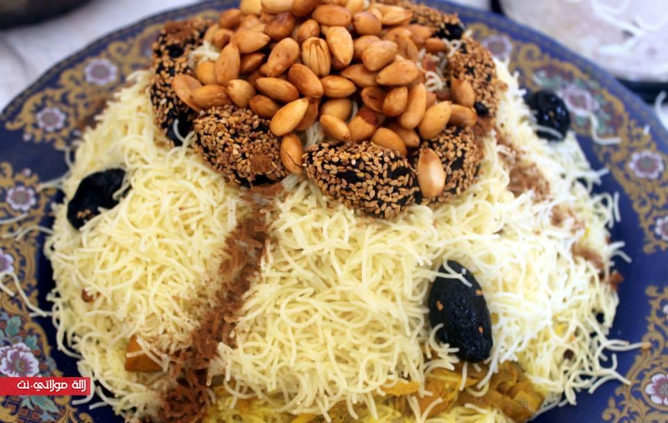 ونغطي الكل بالشعرية ونزوقها بالسكر والقرفة واللوز المهرمش وكذلك اللوز الصحيح.