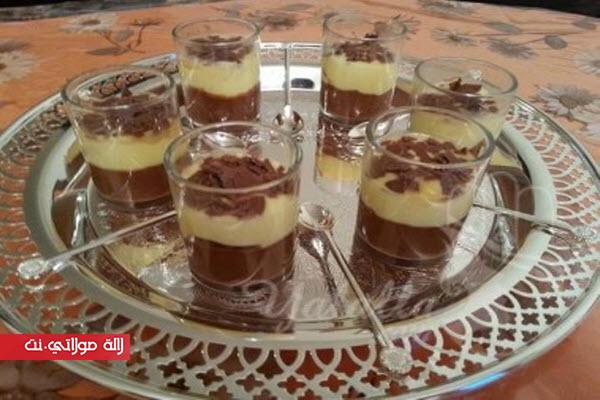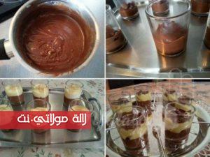 نضع كريم الشكلاط في كؤوس وندخلها التلاجة مدة ساعتين