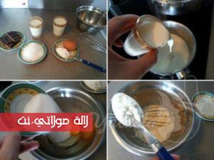 نعمل الكريم والحليب في كاسرونة فوق النار يغلي