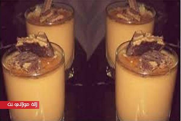 منين كيوليلنا داك السكر كراميل منخليوهش اتحرق كنضيفوليه الحليب اللي فيضنا ادوبنا فيه الشكلاط انضيفوليه البيضة اللي طحنا مع النشا انحركو كلشي فوق عافية مهيلة حتى يعقاد الخليط انحطوه فكؤوس اندخلوه ابرد فالتلاجة