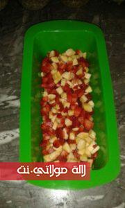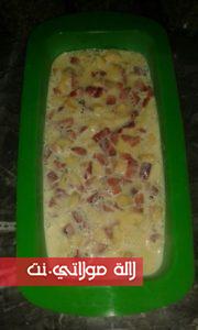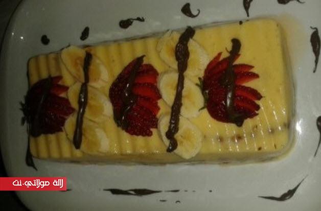 فمول نستفو البسكوي وتم لفواكه مقطعين وفكسرولة نفيضو الحليب مع الفلو والسكر ونخوه فوق البسكويت والفواكه وندخلوه تلاجة يبرد مزيان ونقلبوه ونزينوه حسب الرغبة.
