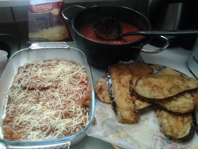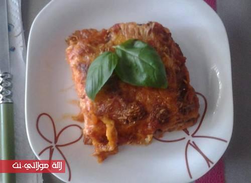 خذ مول نبدأ بصلصة الطماطم ثم يصفف الباذنجان ثم الصلصة من جديد و نرش الفرماج محكوك ثم من جديد الباذنجان و الصلصة و الفرماج و تدخل الى الفرن حوالي 20 دقيقة.