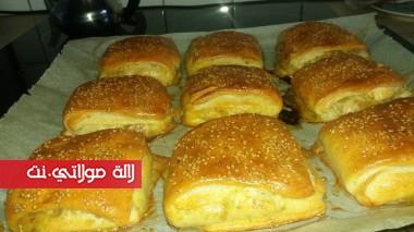 تعجن مزيان ونديروها كويرات ونخليوها ترتاح الحشوة اختيارية بصلة مشحرة مع خيزو محكوك وكرعة محكوكة الكل يتشحرو مع كاشير محكوك وحك ديال الطون مصفي ومعدنوس وزيتون مقطع مع ملح وابزار وشوية زبدة وزيت العود فاش يتشحرو المقادير والطريقة موضحة فالصور وكيتدهنو بالبيض مع قطرات خل ونزوقوهوم حسب الرغبة