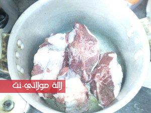 كنوضع اللحم في الكوكوط مع الملح وسديت عليه مدة 20د